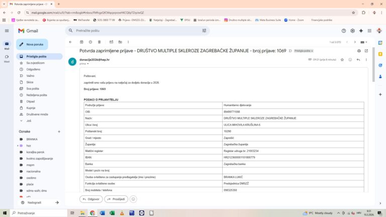 Društvo multiple skleroze Zagrebačke županije prijavilo se na natječaj za projekt koji je raspisala Zagrebačka županija. Natječaj je prijavljen pod nazivom „U pokretu unatoč MS-u”. Rezultate natječaja objaviti ćemo na našim mrežnim stranicama.